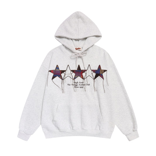 Vintage Star Embroidery Fringe Design Hoodie Unisex Casual Loose Fit Sweatshirt